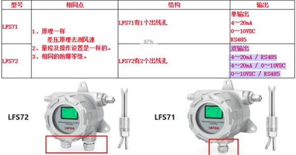 LFS71和LFS72在結(jié)構(gòu)與輸出方面存在明顯區(qū)別。從結(jié)構(gòu)上看,LFS71設(shè)有1個出線孔,而LFS72則有2個出線孔。在輸出方面,LFS71是單輸出,可輸出4-20mA、0-10VDC以及RS485;LFS72為雙輸出,輸出形式包括4-20mA/RS485、4-20mA/0-10VDC、0-10VDC/RS485。