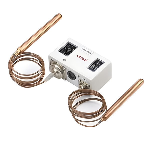TSD型溫差控制器是根據(jù)兩個感溫包感受溫度差值與設(shè)定值比較,給出一個差值信號使溫度控制器動作。在通風(fēng)設(shè)備和制冷裝置中,需要保持兩股介質(zhì)之間的溫差為某一個恒定值時,可采用溫差控制器來實現(xiàn)。兩個相對的感溫包,一個用來作為溫度參考,另一個則用作控制發(fā)信號,而溫差則是直接的受控參數(shù)。