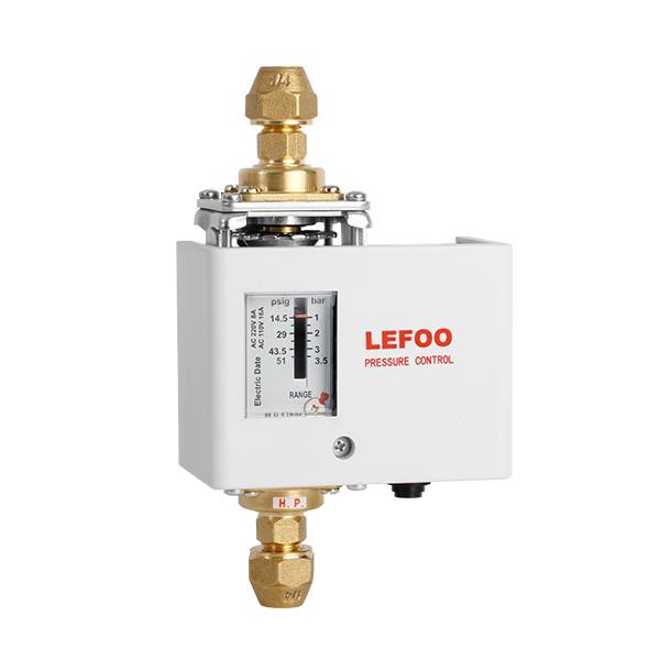 LF5D系列壓差控制器的兩側(cè)各有一個(gè)具有高靈敏度的感壓元件,元件二端的壓力一旦變化,即引起開(kāi)關(guān)機(jī)構(gòu)動(dòng)作來(lái)控制系統(tǒng)的設(shè)備,諸如馬達(dá)驅(qū)動(dòng)閥門。LF5D系列壓差控制器,通常用于水、油系列中控制供液管與回液管的壓差。一種典型的應(yīng)用是,把閥門安裝在系統(tǒng)水(油)泵附近的旁通管路中,當(dāng)系統(tǒng)掖管兩端的壓差升高(或降低)而超過(guò)控制器設(shè)定值時(shí),則閥門進(jìn)而開(kāi)大(或關(guān)小),從而系統(tǒng)液管兩端的壓差減小,達(dá)到系統(tǒng)的正常運(yùn)行。