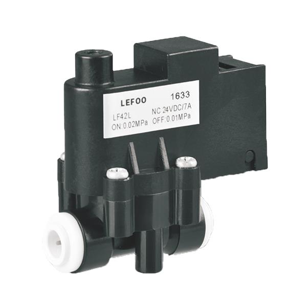 LF42凈水機(jī)高低壓壓力開關(guān)用于凈水器供水壓力保護(hù),有高壓力(LF42H)和低壓力(LF42L)兩個(gè)型號(hào)。LF42-H是高壓力保護(hù)開關(guān),當(dāng)壓力儲(chǔ)水桶水滿時(shí),壓力桶傳遞到高壓開關(guān)的壓力達(dá)到高壓開關(guān)設(shè)定的壓力值時(shí),高壓開關(guān)會(huì)起跳斷開電路,讓泵停止工作,以免損壞泵。