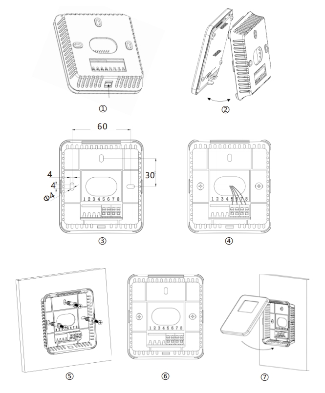 3.變送器后蓋有三個(gè)安裝孔,用膨脹螺釘將其固定于墻面(如圖5),也可以用螺釘固定在墻面預(yù)埋的86盒之上(如圖6);