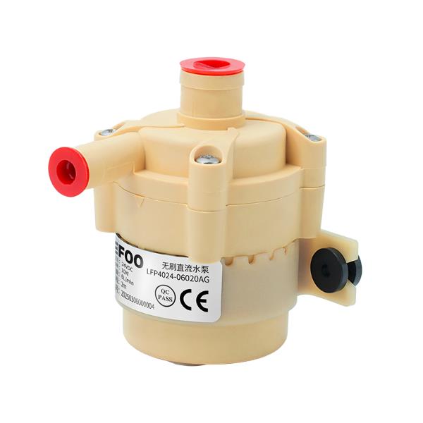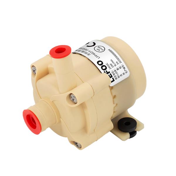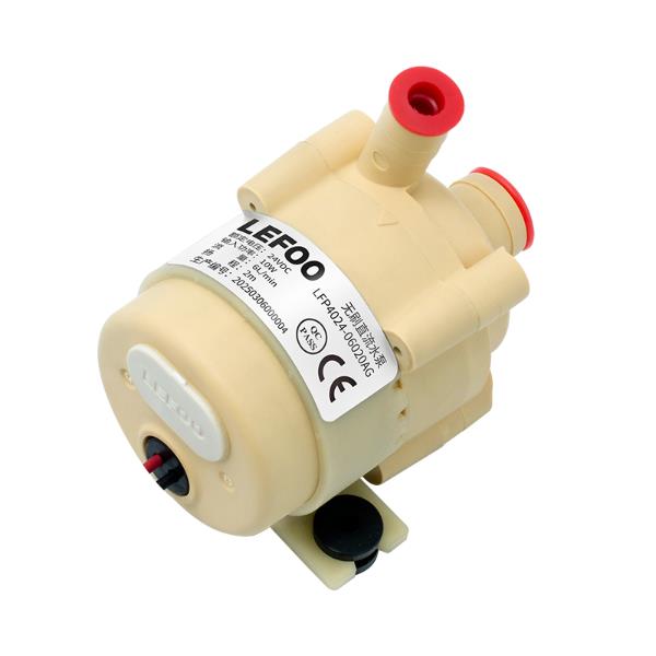 LFP40系列微型無刷直流泵高溫款符合CE/rohs認證,流量再3~7L、最大揚程2.5米;承壓部分用高分子塑料,靜密封設計無泄漏,搭配低噪音直流電機并具備多重保護功能。其電壓、流量可定制,體積小、重量輕,環(huán)境溫度適應-20~40℃,介質(zhì)溫度適應-20~55℃,電壓范圍18~30VDC,絕緣等級F級,防護等級可選IP55/IP68,適用于熱飲機、廚下式凈飲機開水機、儲熱式采暖水循環(huán)、咖啡機、凈水器、果汁機、飲水機、飲料機、自動販賣機等設備。